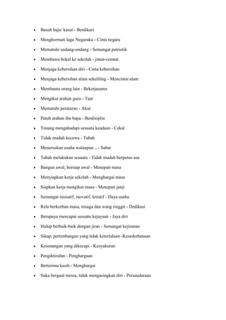 Nilai yang perlu ada pada pemimpin. Empat nilai murni iaitu rajin amanah disiplin dan bertanggungjawab perlu menjadi pegangan buat penjawat awam supaya dapat membentuk negara berjaya dan dihormati dunia.